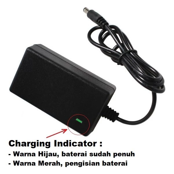 – Saat mengisi daya dengan tegangan konstan, lampu merah akan berubah menjadi hijau (jika sudah penuh)